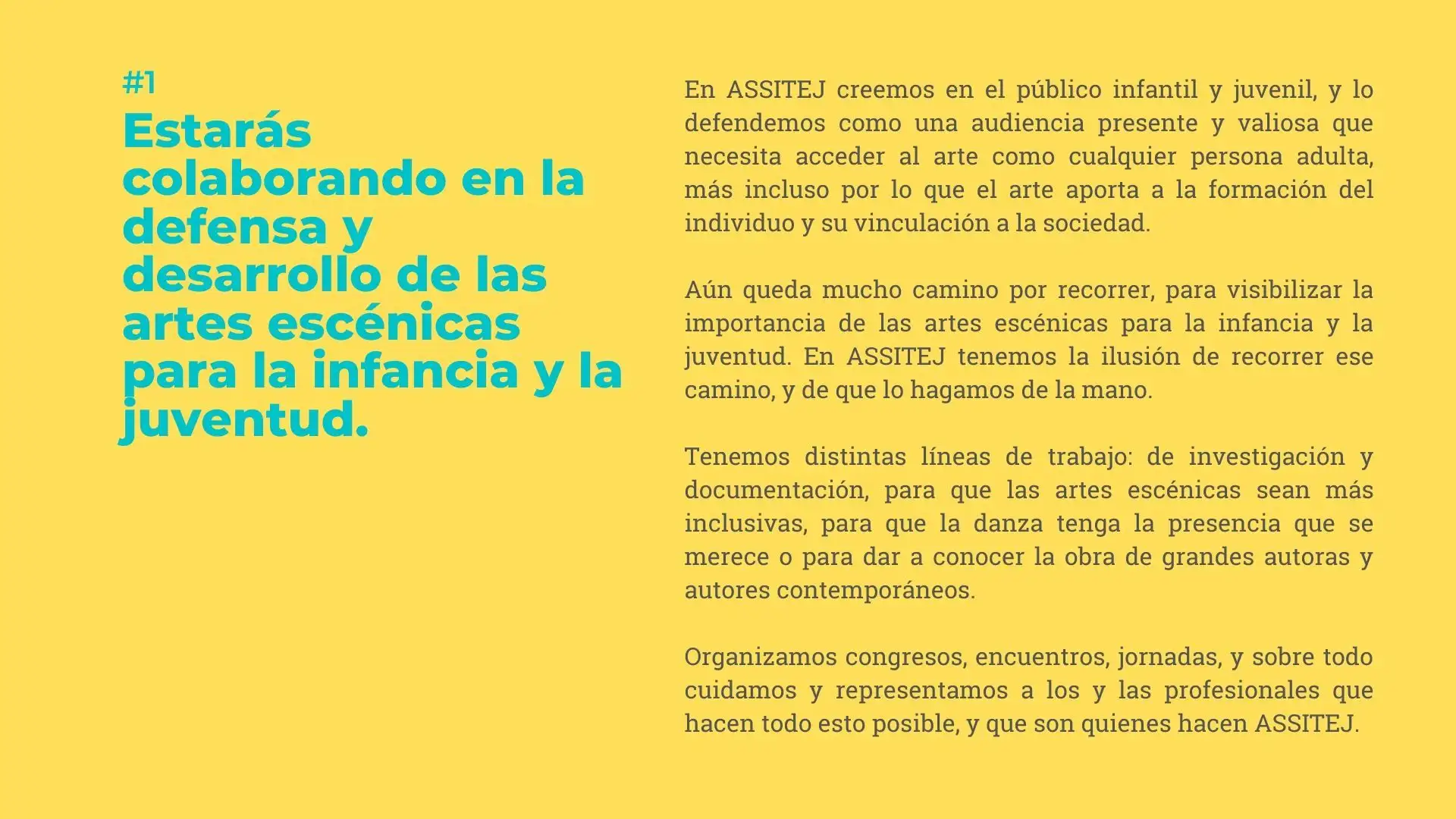 - Formarás parte del directorio profesional de ASSITEJ con un perfil personalizable.