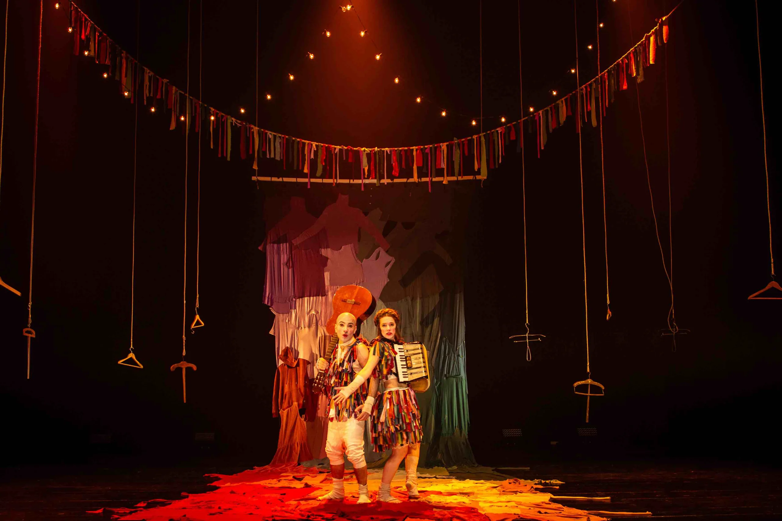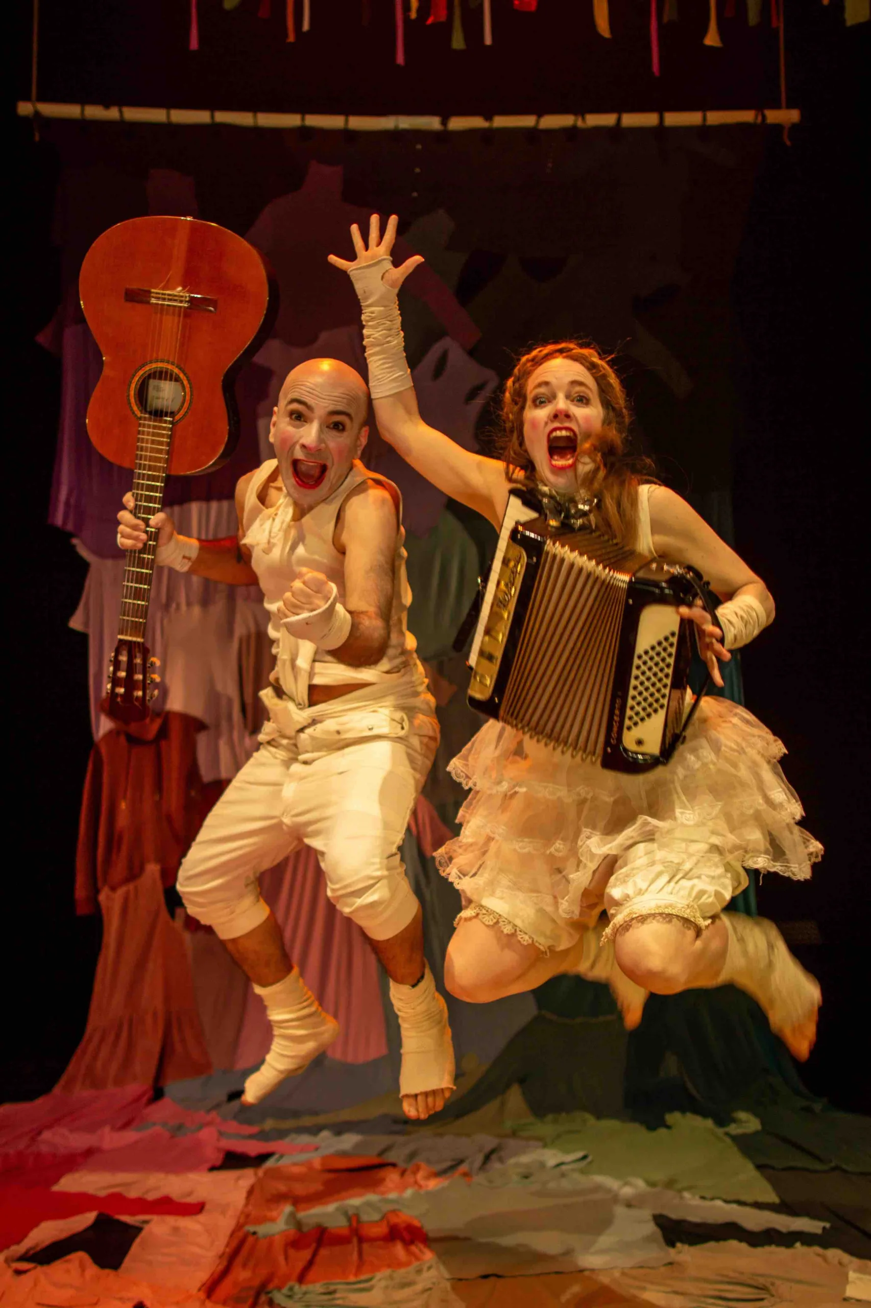 “Carnaval de la vida” es un espectáculo de teatro musical para toda la familia que celebra la maravilla que es vivir. La compañía ítalo-holandesa combina música en vivo, teatro gestual, humor, teatro de objetos y, como en todas sus propuestas, invita al público a participar activamente. Los artistas juegan con la ropa como dos niños que abren el armario de sus padres para disfrazarse. Porque cada etapa de la vida puede ser un carnaval, y el simple hecho de haber nacido merece ser festejado.