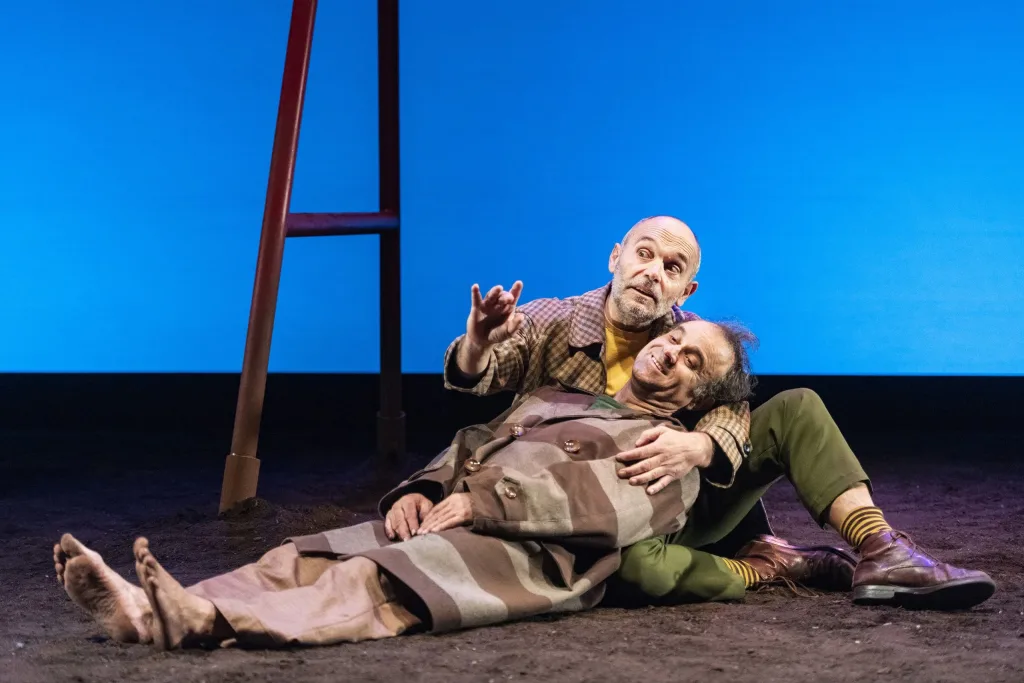 Dous homes están xogando xunto a un balancín e esperando a que chegue Samuel para celebrar unha festa. O mestre pasa, dálles unha lección e marcha. O tempo pasa, nunca deixa de pasar, nunca deixa de pasar, nunca… Xogando, agardan outro día. E se hoxe xa fose mañá? Montando no balancín, quizais poidan escapar.